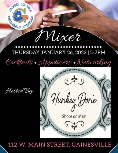 Come join us at the monthly chamber mixer. Hosted by Hunkey Dorie Shops on Main! Appetizers and drinks will be available as you network and learn more about this business!